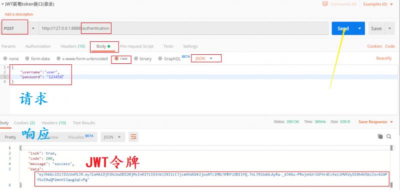 测试登录接口,即:获取token的接口。输入正确的用户名、密码即可获取token。