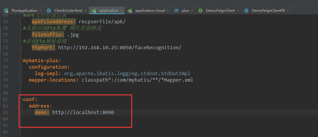 @FeignClient(name="demo",url="${conf.address.demo}",fallbackFactory=DemoFeignClientFB.class)