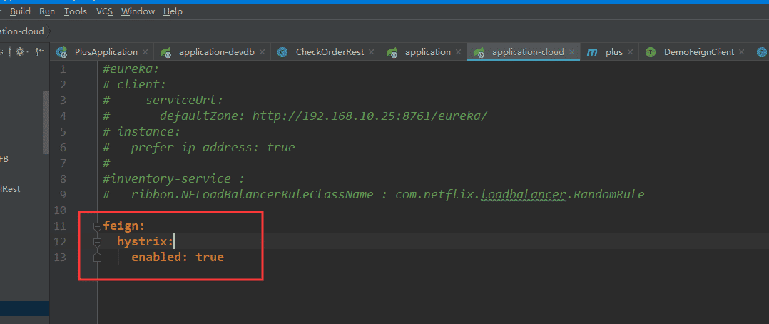 如果要支持熔断(如果调用远程接口报错,远程接口就返回一个固定的值)需要在配置文件里启用hystrix