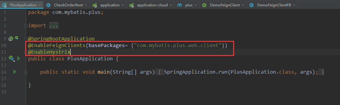 4.在启动类上加上支持feign的注解就ok了(这里basePackages值是定义client类的包路径)