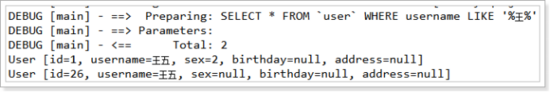 List<Object> list = sqlSession.selectList("queryUserByUsername2", "王");