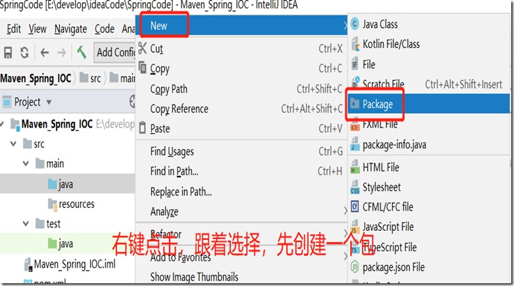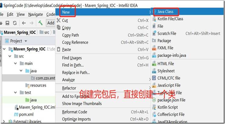 导入依赖后就创建包,创建包是为了更好的去管理Java类,创建好包之后就直接创建类,创建包和类的命名遵从Java命名规范即可。