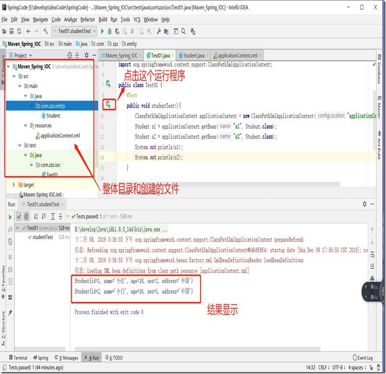 最后,直接运行程序,这样一个简单的Spring IOC结合Maven的项目就完成了。