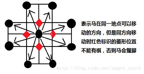4.马:只能走日,(这个比较麻烦,且看下图标识)
