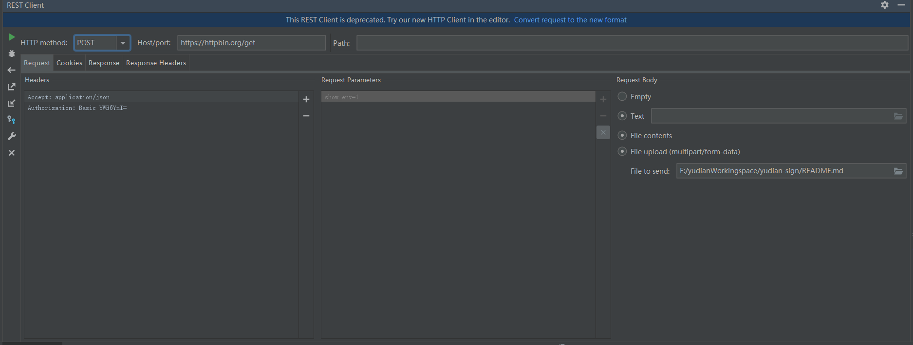 上面的历史记录就是一个完整的IDEA REST Client请求脚本,如果你是从控制台触发的,那么可以直接复制历史请求记录的文件放到项目里作为HTTP请求的脚本,给其他成员共享,如果不是,也可以直接新建一个.http或者.rest结尾的文件,IDEA会自动识别为HTTP请求脚本。