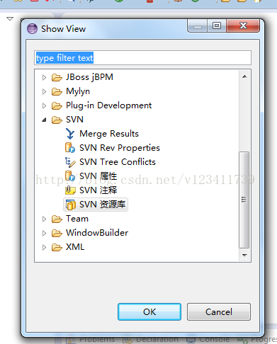 1.在eclipse中,从show view里调出SVN资源库视图