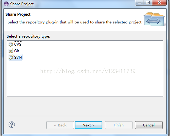 8.选择repository类型为SVN --> 点击next