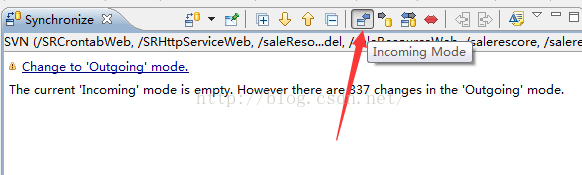 4.将模式切换到Incoming Mode,这个模式下的代码都是服务器更新的代码,需要下载到本地的,右键要更新的文件-->team-->更新