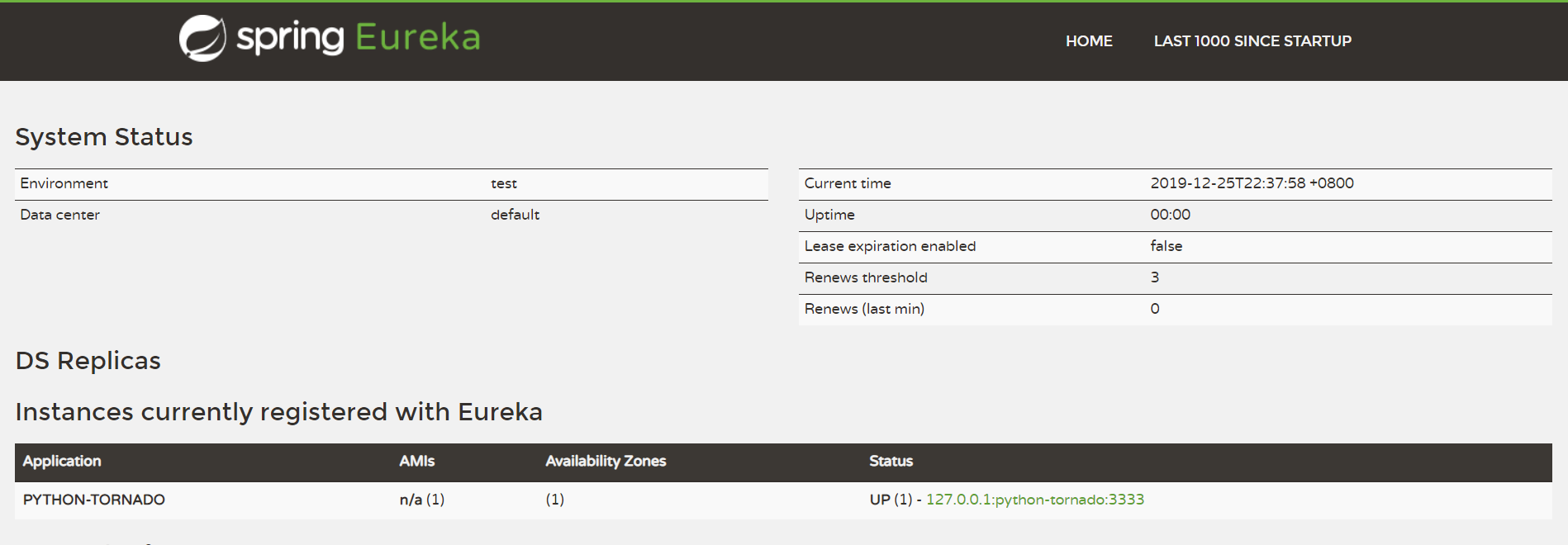 启动python服务(在此之前要创建一个Eureka服务注册中心)