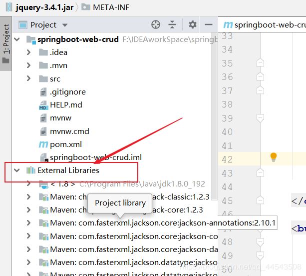 之后所有的/webjars/** 都会去classpath:/META-INF/resources/webjars/中找资源,这个路径则在下面这个目录中