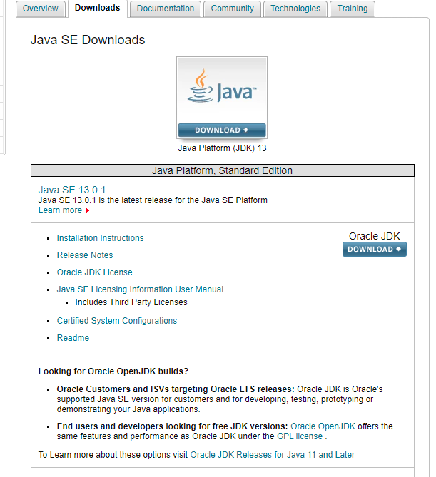Oracle官网下载:https://www.oracle.com/technetwork/java/javase/downloads/index.html,点击右侧下载