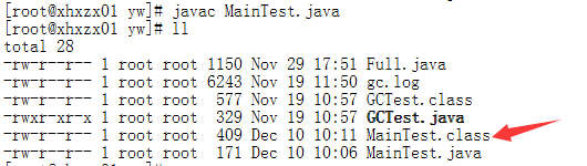 2.编译java文件生成 XX.class文件 javac MainTest.java