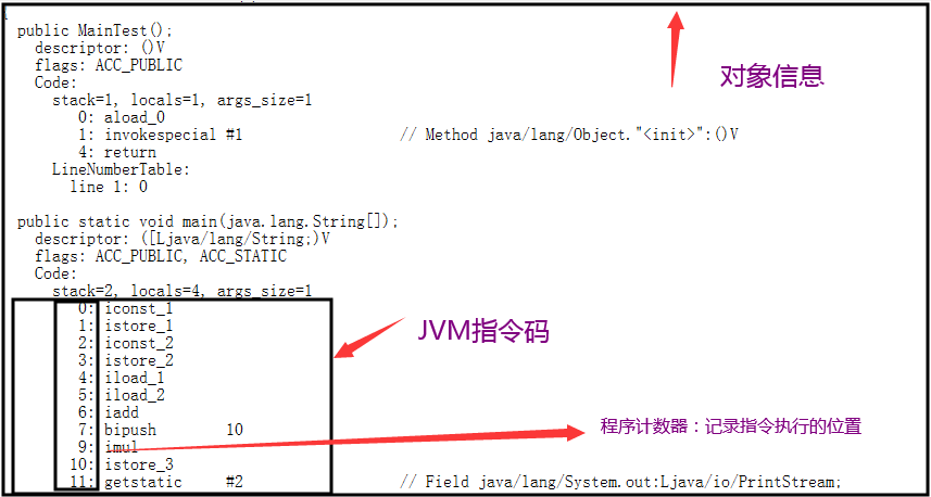 3.反编译.class文件为JVM指令码javap -c -v MainTest.class