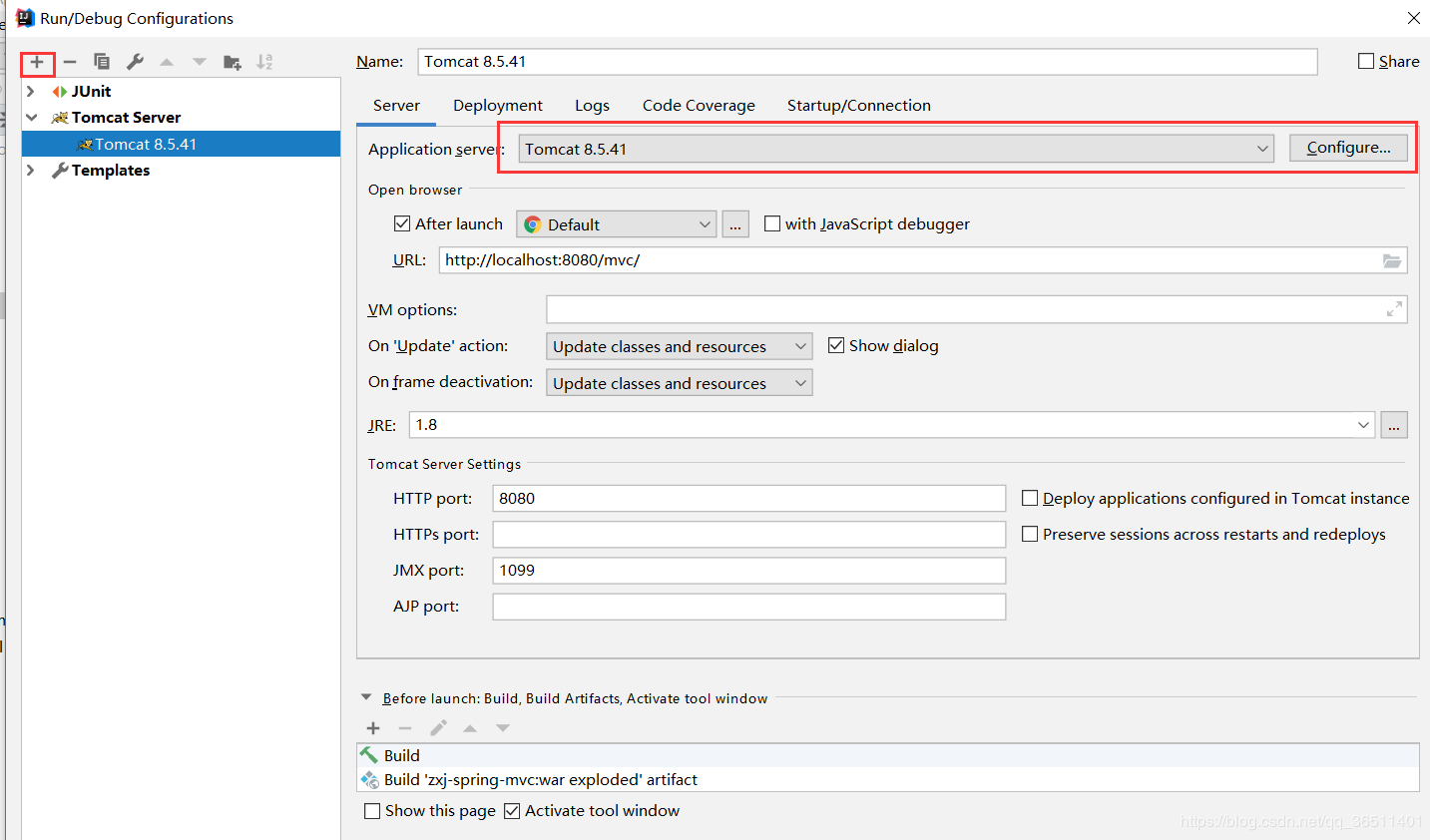 2、用Tomcat进行启动项目的配置。然后启动项目。