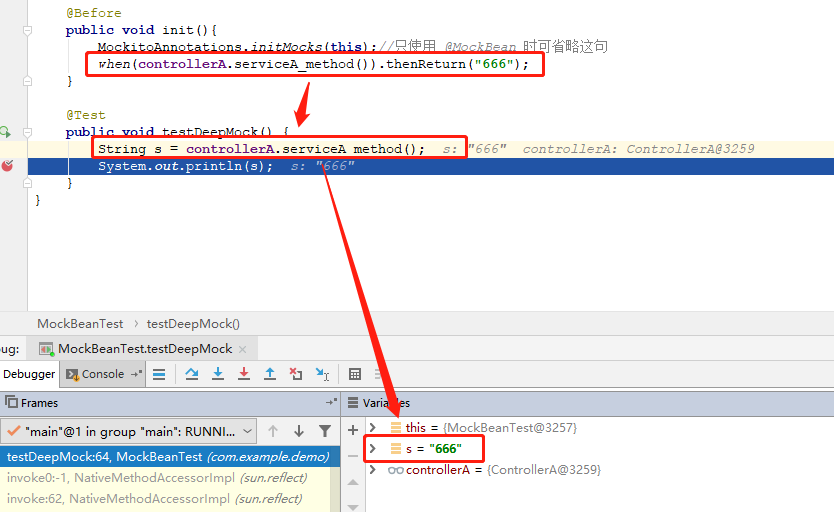 when(controllerA.serviceA_method()).thenReturn("666");