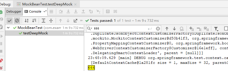 4.单元测试时,就不会使用原有Bean的方法,而是使用Mock Bean及其已经指定了返回值的方法