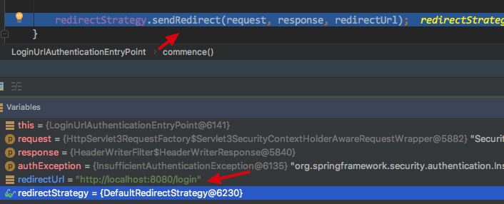 该过滤器它会接收到FilterSecurityInterceptor抛出的 AccessDeniedException异常)并且进行捕获,然后发送重定向到/login请求