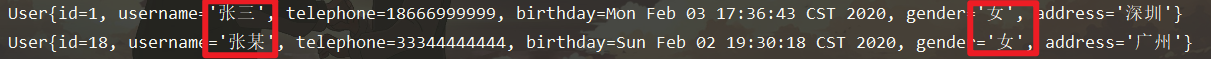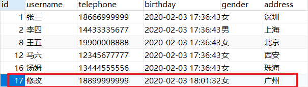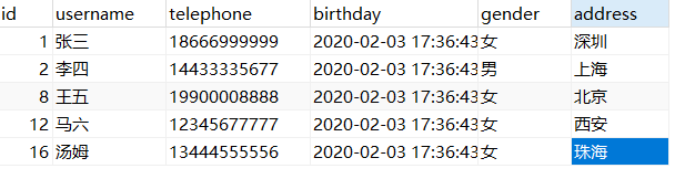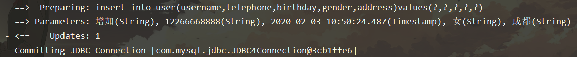 insert into user(username,telephone,birthday,gender,address)values(#{username},# {telephone},#{birthday},#{gender},#{address})