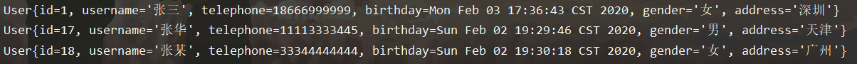 List<User> users = userMapper.findByName("%张%");