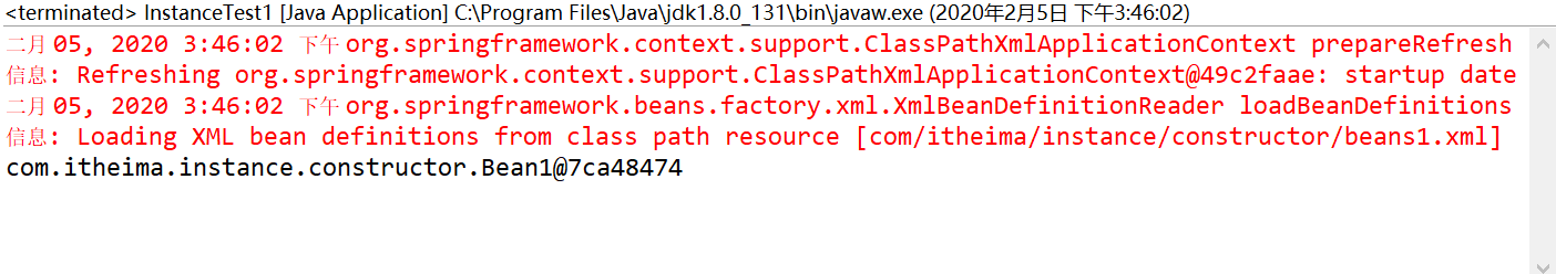 <bean id="bean1" class="com.itheima.instance.constructor.Bean1"></bean>
