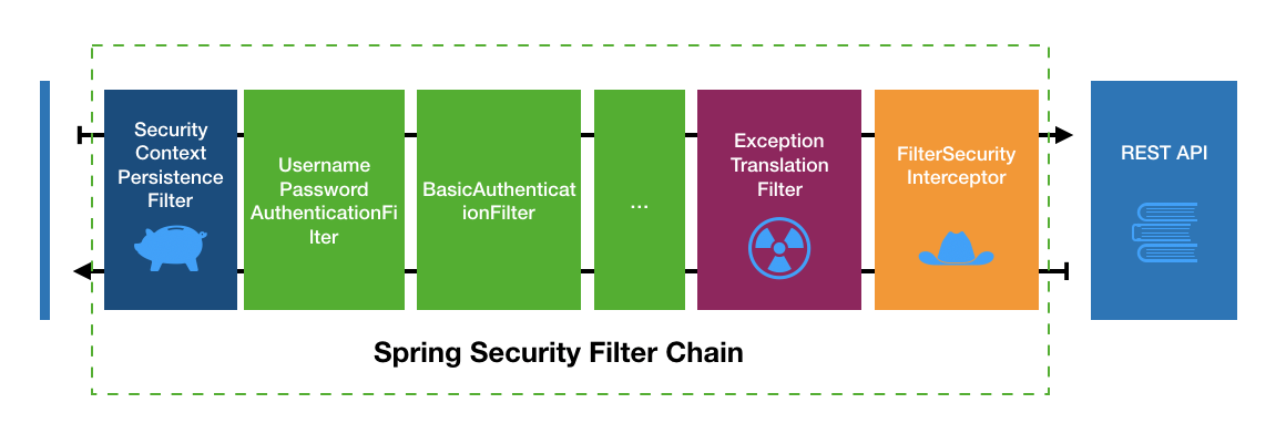 这里的前台Filter仅仅指实现认证的Filter,Spring Security Filter Chain中处理这些Filter还有其他的Filter,比如CsrfFilter。如果非要给角色给他们,那么就当他们是保安人员吧。
