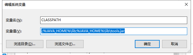 新建系统变量CLASSPATH变量, 输入如下值: .;%JAVA_HOME%\lib;%JAVA_HOME%\lib\tools.jar,注意前面的小数点也要带上。