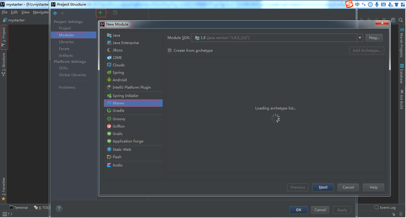 3、在该工程中点击+,选择new module,新建一个Spring Initializr工程