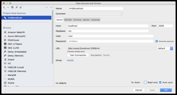 连接成功后,点击 OK。默认情况下没有展示连接下的数据库,需要我们手动勾选,例如我这里要连接 vhr 数据库,如下: