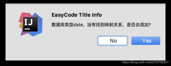 第一次添加的时候,如果有数据库类型没有对应的 Java 类型,就会有提示,这个根据它的引导去添加映射关系即可,例如我在添加的时候,出了一个这个提示: