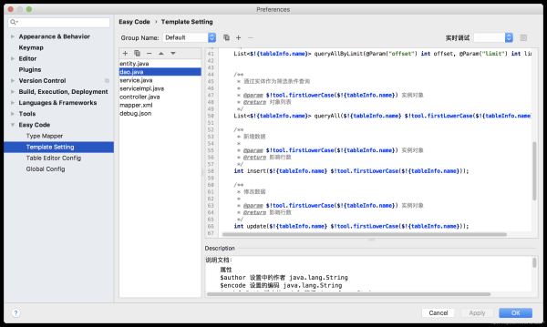 当然如果你觉得 EasyCode 自动生成的模版不够用,或者不好用,我们也可以自定义模版。