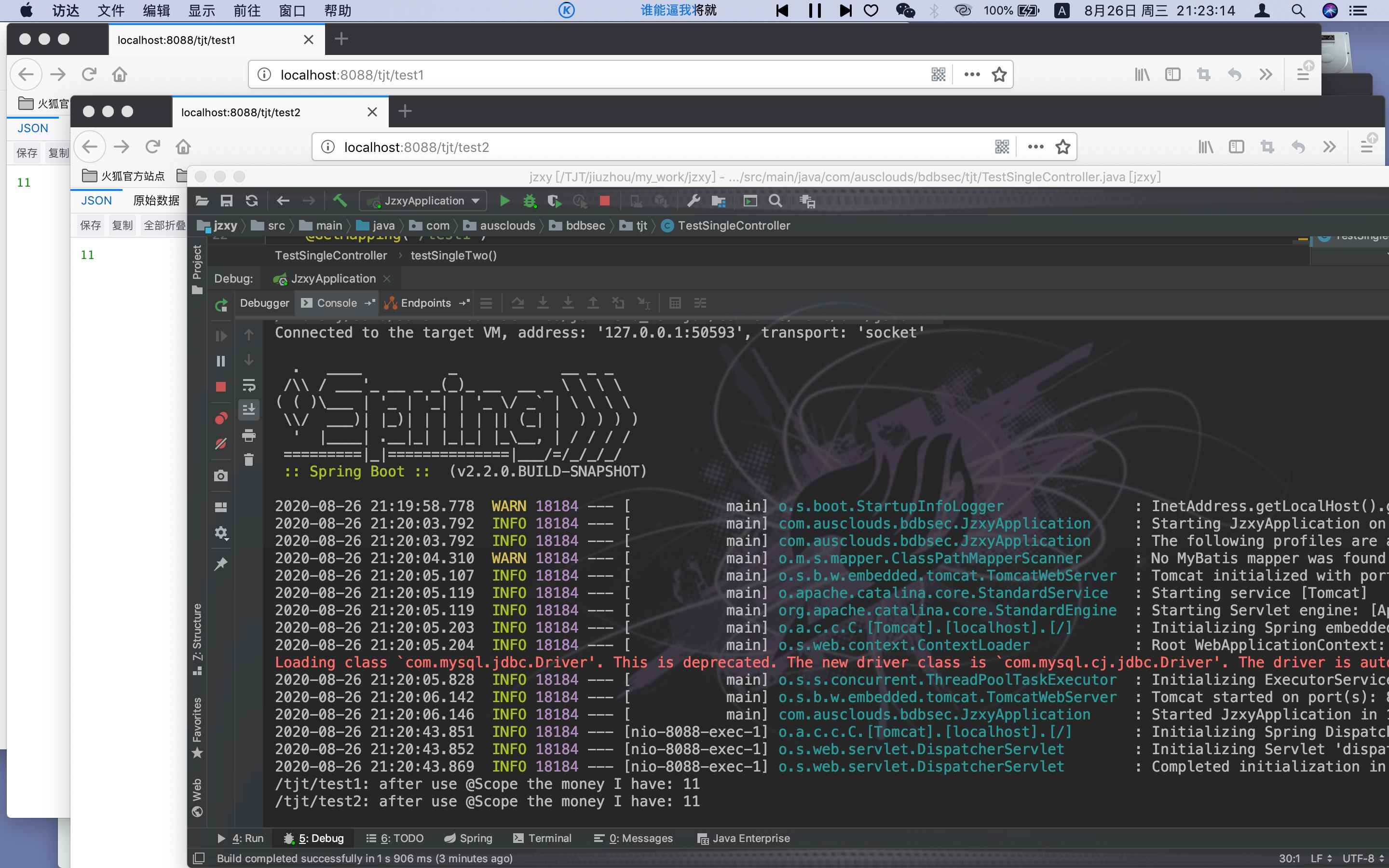 接着,再访问http://localhost:8088/test2,得到的答案也是 11;