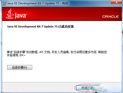 (4)安装完成后,弹出JDK安装完成界面,点击"关闭"完成JDK安装