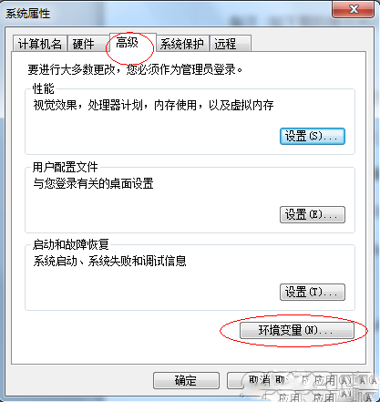 (2)进入系统属性界面,点击"高级",进入系统属性-高级界面,点击"环境变量"