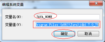 (3)进入环境变量界面,在"系统变量"下点击"新建",创建变量名为"JAVA_HOME",变量值为"C:Program Files (x86)Javajdk1.7.0_75"的变量,创建完成点击"确定"