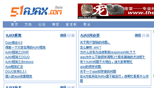 51AJAX.com站点首页的效果,其中各个模块是可以任意拖动的: