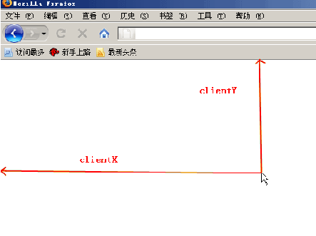 这两个属性的类型都是Integer,单位是像素,可读可写。分别表示相关事件发生时,鼠标在浏览器的客户端区域(不包括工具栏、滚动条等)的x坐标和y坐标。用一张图片来解释就再好不过了,请看: