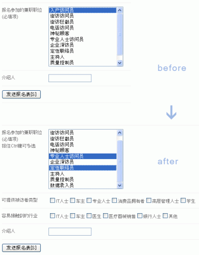<label class="title">报名参加的兼职职位(必填项)<br/>按住Ctrl键可多选</label>