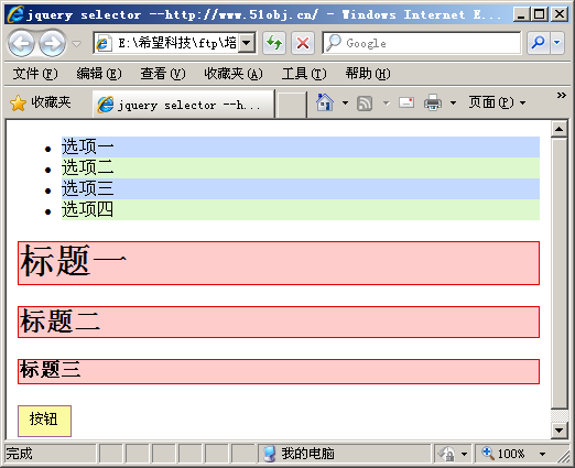 Jquery中基本选择器包括*,class,element,id及这种群组方式selector1,selector2,…