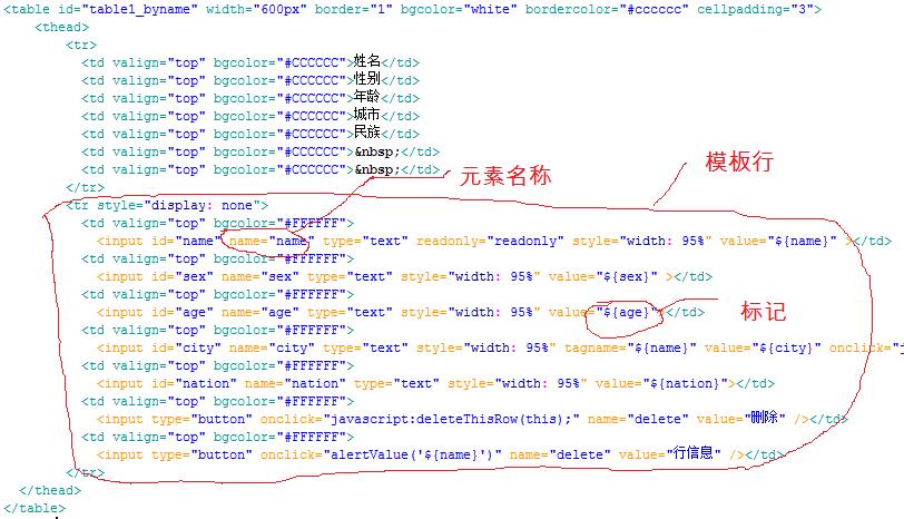 4, 对于填充标志的做法,刚开始的思路是,直接将模板行中的tr下的内容当成文本进行标志的替换,但是显示时没有内容,于是只能逐个把td中的内容对标志进行替换,发现显示时是正确的,这个地方使我有点困惑。很明显前者的做法效率更高,却莫名其妙地显不出来,只能退而求其次了。