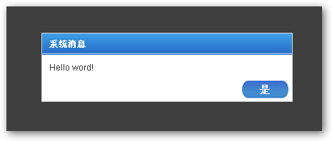 jQuery.jMessageBox.show('系统消息', '您好!');