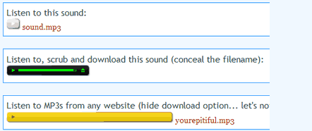 它使用一个在后台的Flash文件来播放Mp3文件,播放器的任何一个地方都可以在XHML/CSS文件里控制。