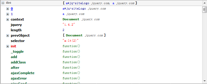 通过 doc[0]、doc[1] 可以分别取出一个 DOM 对象,其它的则是一些 jQuery 对象特有的属性和方法;实际上 jQuery 对象包装了 DOM 对象,同时还包含了一些操作 DOM 元素的 jQuery 方法。