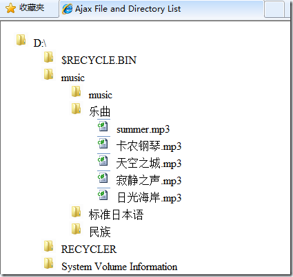 下面考虑客户端html代码的编写。最主要的就是两个事件,也就是鼠标点击发送ajax请求,处理返回的json数据生成html代码,鼠标再次点击将html代码清空。在这里,采用ul li来显示这个treeview,在li中有一个不可见的span,里面包含了文件完整的路径,它将用作发起ajax请求的参数,但是对用户是不可见的。