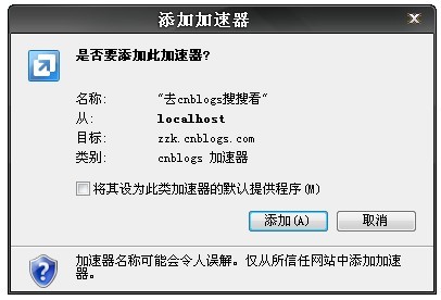 在用一个事件事件触发一下onclick="window.external.AddService('cnblogs.xml')"即可,触发后会弹出如下界面