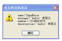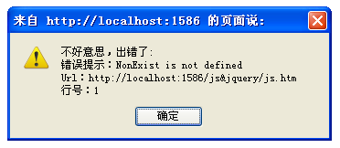 alert("不好意思,出错了:\n错误提示:"+message+"\nUrl:"+url+"\n行号:"+line);