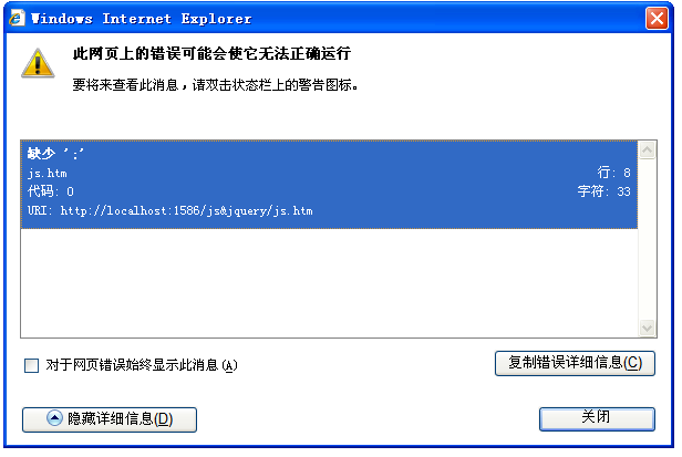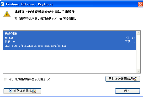 Firefox提示的错误信息要比IE全面而且准确的多。
