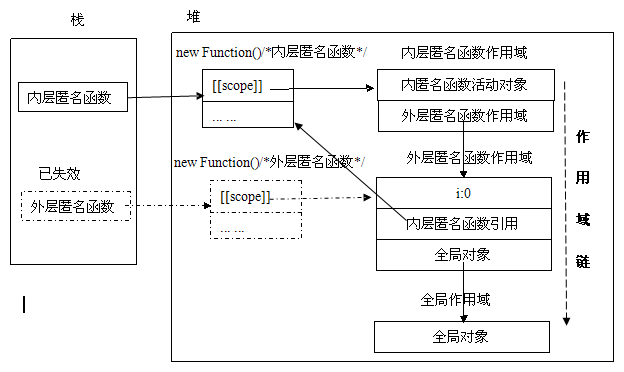 下图清晰的展现了上述代码的内存分配与作用域分配情况: