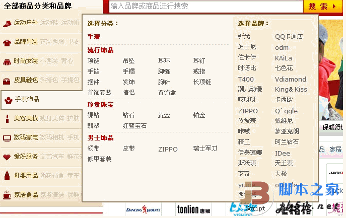 他便给我截了个图是,QQ商城的分类菜单,效果如下: