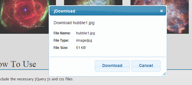 这个插件在用户点击下载的时候会弹出一个框子,告诉文件的名称、类型、大小等信息,用户可以选择下载或者取消,是一种非常好的用户体验。