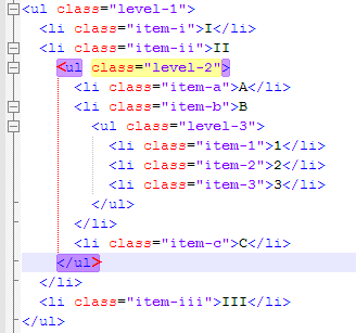 使用:$('ul.level-2').children().css('border', '1px solid green'); 的效果是: